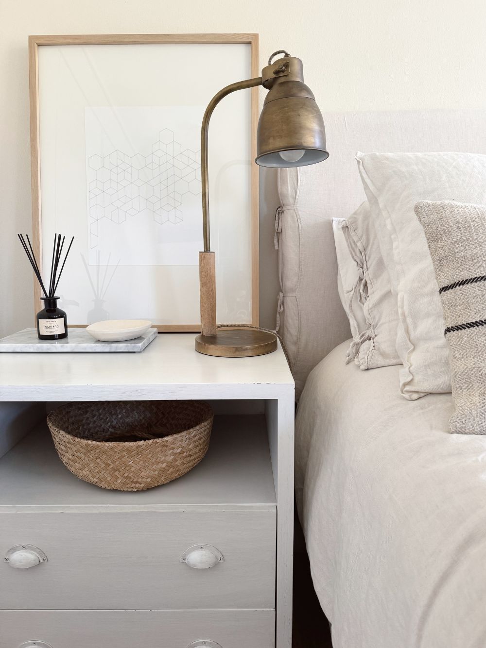 Geometría tejida en papel enmarcado en marco caja mañio color natural con paspartú blanco