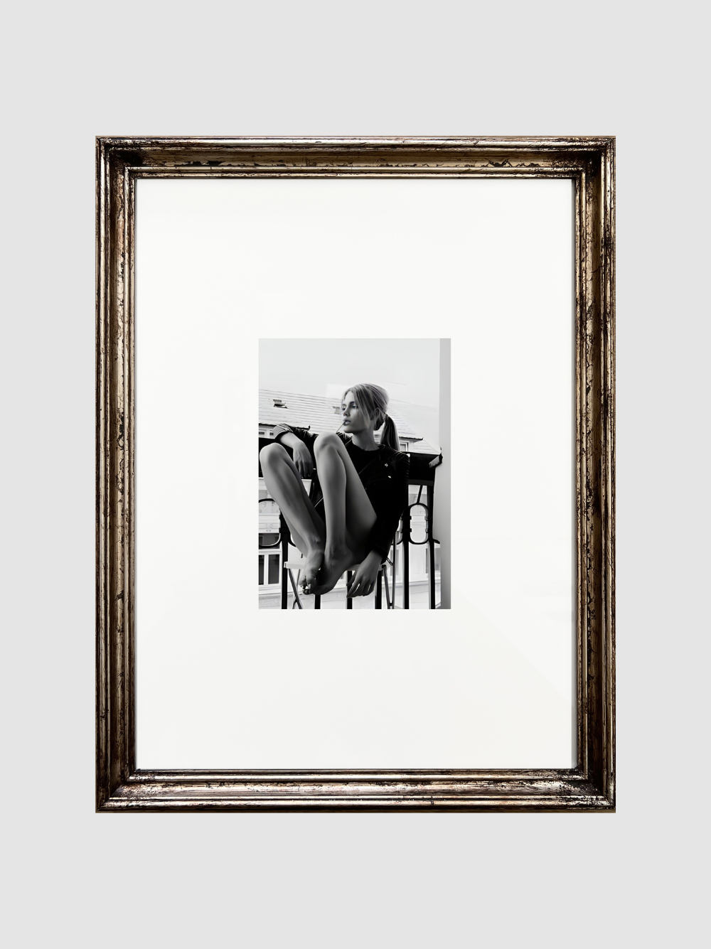 Enmarcado con marco Frances envejecido de 2 cms de frente y paspartu blanco